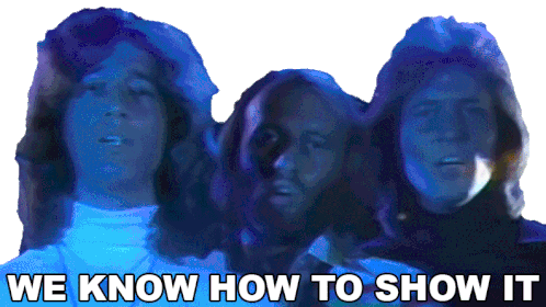 Barry, Maurice, and Robin Gibb of the Bee Gees confidently declare 'We know how to show it' in this iconic sticker.
