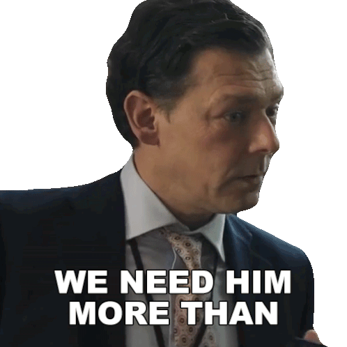 Quincy Harrington from Heads of State delivers the line 'We need him more than he needs us' with a serious expression.