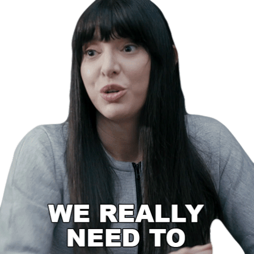 Lindsey Pearlman as Karen expresses the urgent need to finish a conversation with various facial expressions.