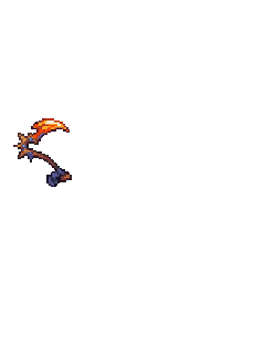 A dynamic pixel art animation featuring a weapon or small figure engulfed in vibrant orange and yellow flames, swirling upwards.