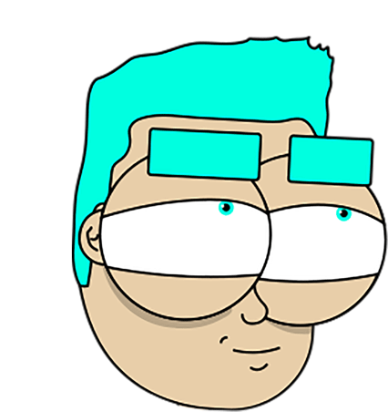 Polux Weber, the character from Weberfuture, looks contemplative with his signature turquoise hair and glasses.
