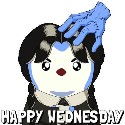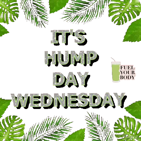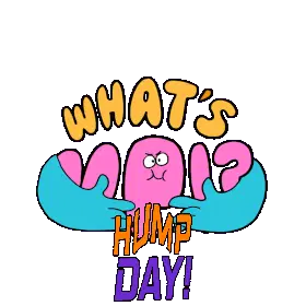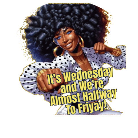 A cheerful cartoon woman celebrates Wednesday, reminding everyone that the week is almost halfway to Friday.