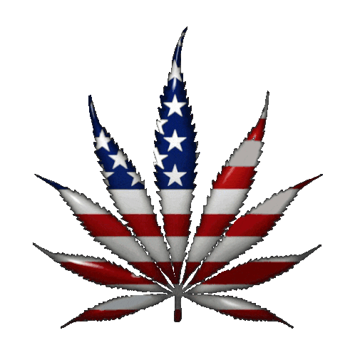 An animated cannabis leaf featuring the American flag design, symbolizing USA weed culture and patriotism.