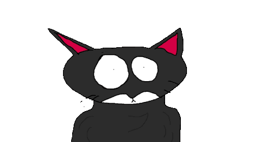 a drawing of a black cat with red ears and white eyes