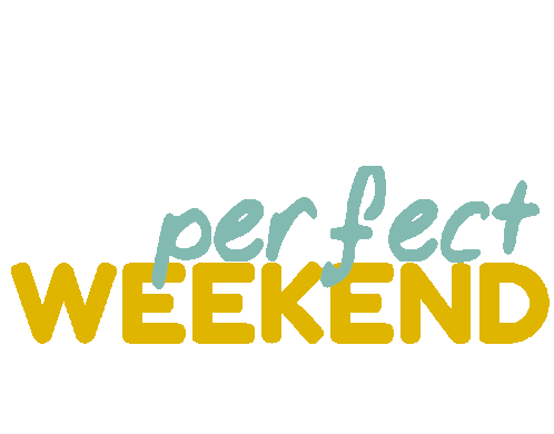 A vibrant text sticker displaying 'perfect' in blue cursive and 'WEEKEND' in bold yellow, celebrating a great weekend.