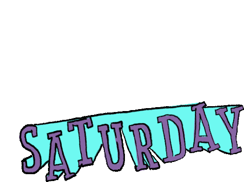 An animated sticker featuring the word 'SATURDAY' in a stylized purple and light blue font, perfect for weekend vibes.