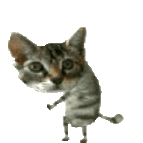 a pixelated image of a cat standing on its hind legs on a white background