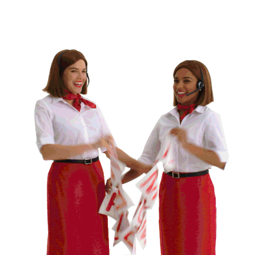 Two smiling women in uniforms hold up a banner that reads "WELCOME HOME", expressing a warm greeting.