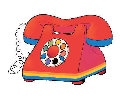 Wally Darling's iconic red rotary telephone from Welcome Home, featuring a colorful dial and coiled cord.