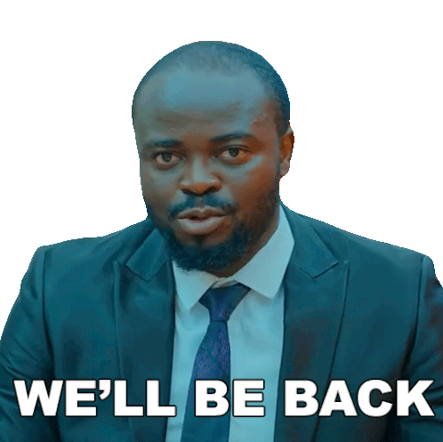 Kbrown from Mark Angel TV, dressed in a suit, looks directly at the camera with the caption 'WE'LL BE BACK'.
