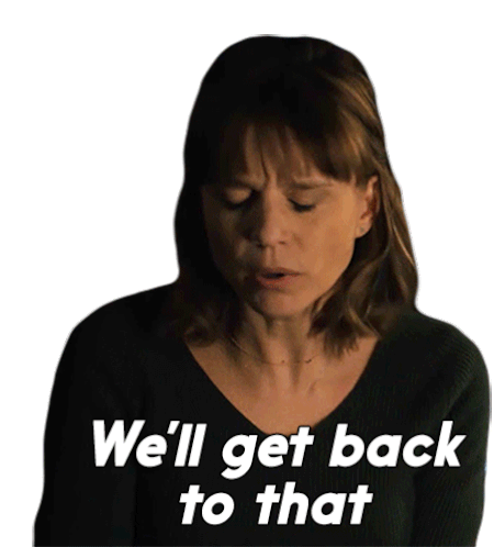 Kristen Bouchard, played by Katja Herbers, delivers the line 'We'll get back to that' with a serious expression.