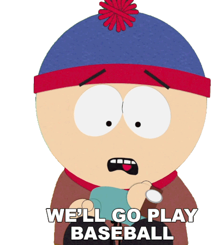 Stan Marsh from South Park, looking surprised, says 'WE'LL GO PLAY BASEBALL'.
