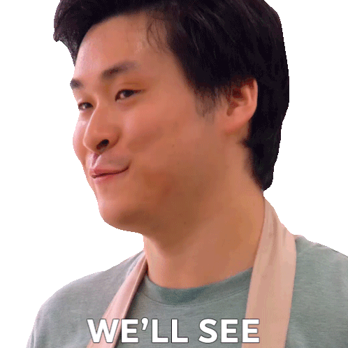 Marcus from The Great Canadian Baking Show smiles, expressing hope with the caption 'Hopefully It Works'.