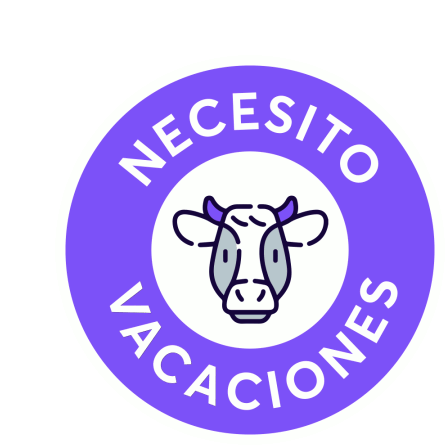 A cow icon in a purple circle with "Necesito Vacaciones" (I Need Vacations) text, by Weplash.