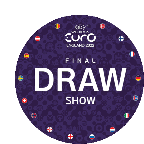 Official sticker for the UEFA Women's EURO England 2022 Final Draw Show, featuring flags of participating nations.