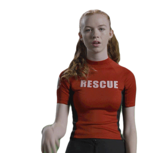 Abby Donnelly as Lizzie from Malibu Rescue wipes her forehead in relief, expressing a 'wew whew' moment after a close call.