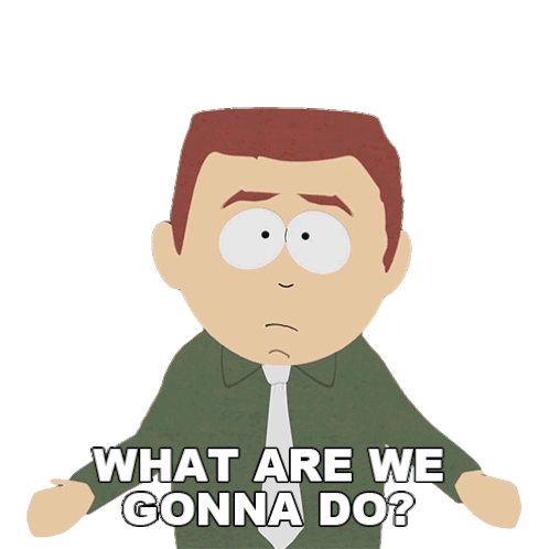 Stephen Stotch from South Park shrugging with a worried expression, asking 'What are we gonna do?'