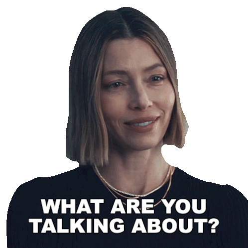 Chloe Taylor smiles and asks 'What are you talking about?' with a confused yet amused expression.