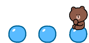 Brown bear character sits on a blue bubble, looking thoughtful or confused, with two other bubbles nearby.