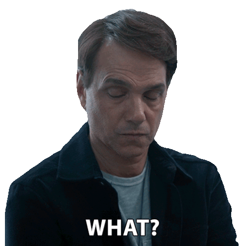 Daniel LaRusso from Cobra Kai shows a surprised and confused reaction, with the prominent caption 'WHAT?' below him.