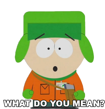 Kyle Broflovski from South Park looks confused and asks 'What do you mean?' with a worried expression.