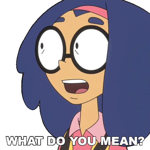 Animated character Saltine looks confused, asking "What do you mean?" with a surprised expression.