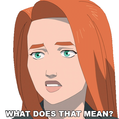 Atom Eve from Invincible looks confused and asks 'WHAT DOES THAT MEAN?' with text appearing below her.