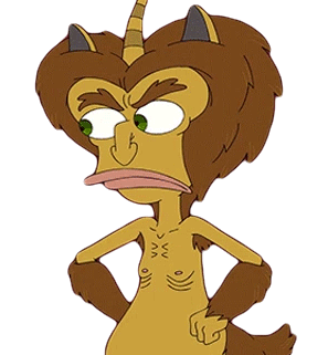 Maurice the Hormone Monster from Big Mouth looks confused and surprised, expressing 'What?' or 'Huh?' with a quizzical expression.