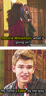Patricia Williamson questions a situation, while Eddie Miller reacts with confusion and a shrug, asking 'What is going on?'