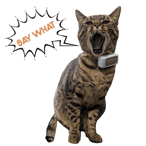 a cat with its mouth open and a speech bubble that says " say what "