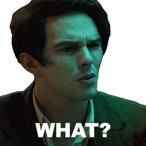 Renfield, played by Nicholas Hoult, looks utterly confused and asks 'WHAT?' with a furrowed brow and a questioning gaze.