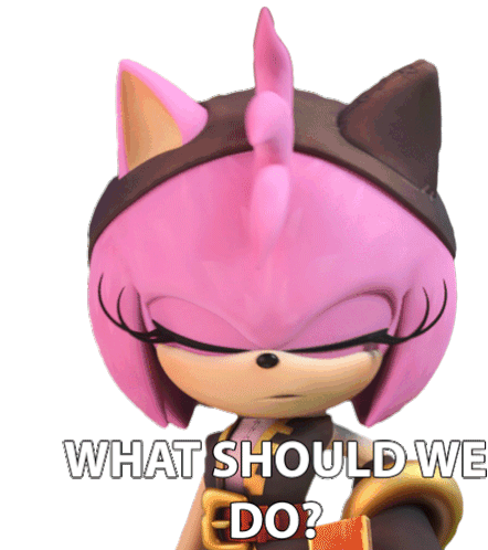 Amy Rose from Sonic Prime asks 'What Should We Do?' in this animated sticker, perfect for expressing uncertainty or seeking advice.