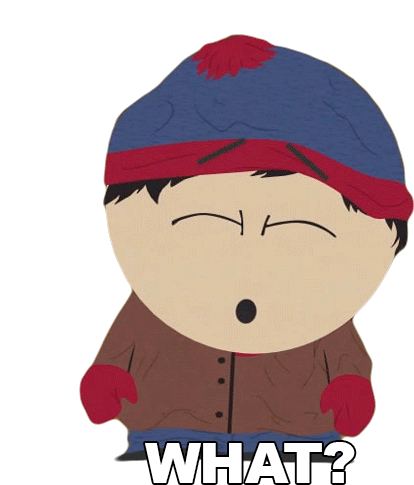 Stan Marsh from South Park looks surprised with wide eyes and an open mouth, exclaiming "WHAT?".