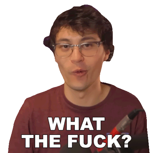 Agufish, a man in glasses and a maroon shirt, reacts with 'What the fuck?' in surprise and disbelief.