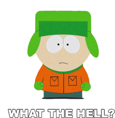 Kyle Broflovski from South Park looks shocked and confused, exclaiming "What the hell?" in a moment of disbelief.