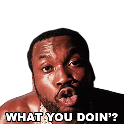 Meek Mill asks 'What you doin'?' with a direct, questioning gaze and a slight smile, perfect for a curious reaction.