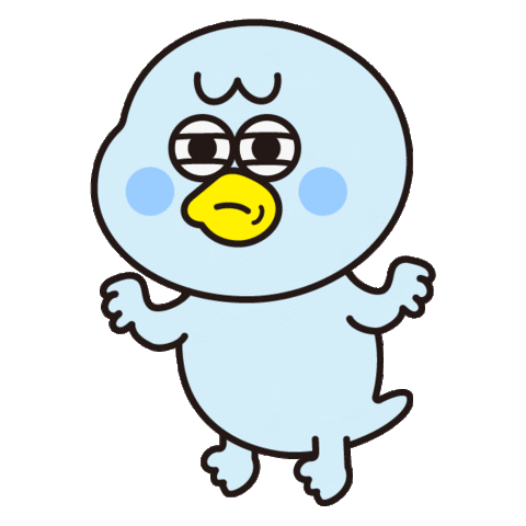 A cute light blue cartoon bird character shrugging with a confused or annoyed expression, conveying 'whatever' or 'I don't know'.