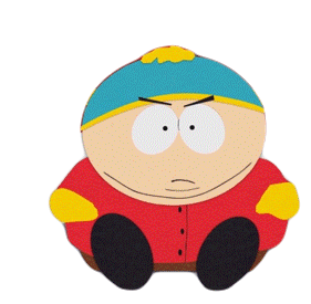 Eric Cartman from South Park sits with an angry, annoyed expression, blinking slowly as if questioning a situation.
