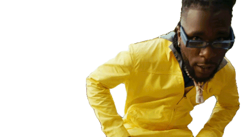 Burna Boy, the Atlantic Records artist, glares intensely while wearing a bright yellow jacket and stylish blue sunglasses.