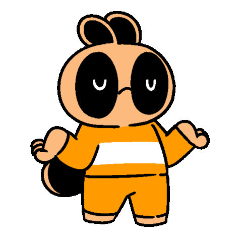 A cute orange raccoon-like character looks confused and unsure, perfect for questionnaire reactions.