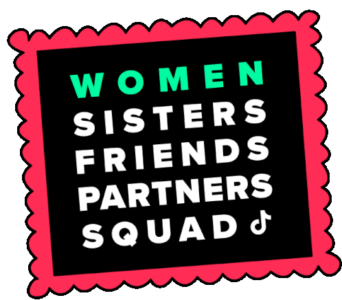 A powerful sticker featuring 'WOMEN SISTERS FRIENDS PARTNERS SQUAD' with green highlights, celebrating female bonds.