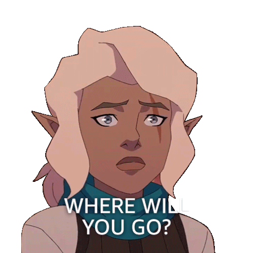 Pike Trickfoot from The Legend of Vox Machina looks concerned, asking 'Where will you go?'