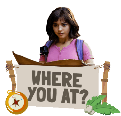 Dora, played by Isabela Moner, holds a map and asks 'Where You At?' in this animated sticker, perfect for finding friends.