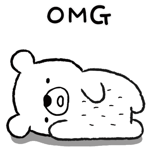 A cute white cartoon bear lies on its stomach, looking surprised or overwhelmed, with 'OMG' text, conveying shyness or shock.