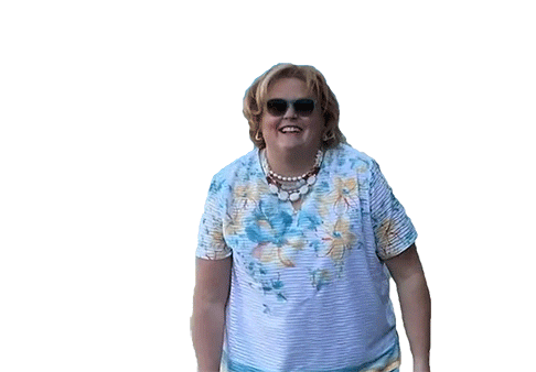 Fortune Feimster from Barb and Star Go to Vista Del Mar shrugs with a smile, expressing 'Who Knows?'