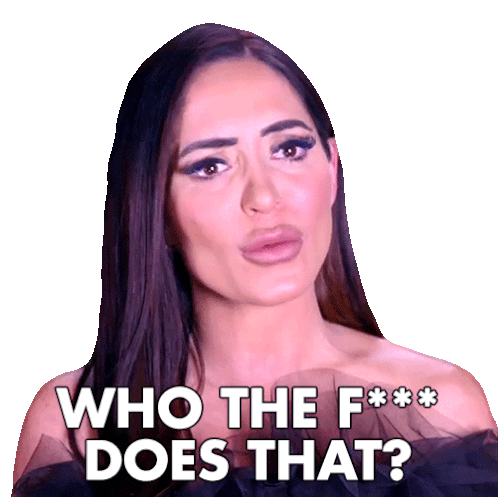 Angelina Pivarnick from Jersey Shore expresses disbelief, asking 'Who the f*** does that?' with a questioning look.