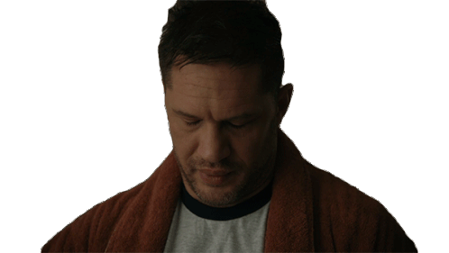 Eddie Brock, played by Tom Hardy, looks surprised and takes a sip of orange juice in this 'Venom' sticker.