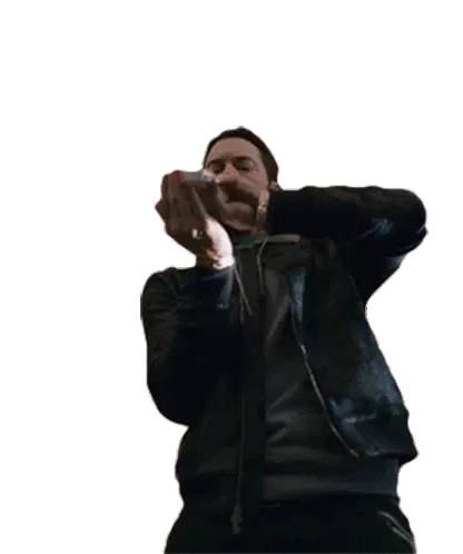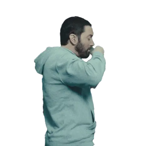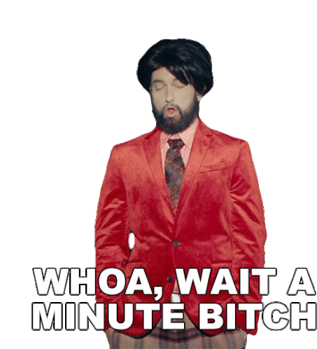 Eminem in a red suit and wig, reacting with 'Whoa, Wait A Minute Bitch' text overlay. Perfect for a surprised pause.