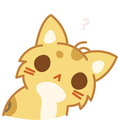 Bugcat, a cute cartoon cat, looks utterly confused as a pink question mark appears above its head, expressing 'huh' or 'what'.