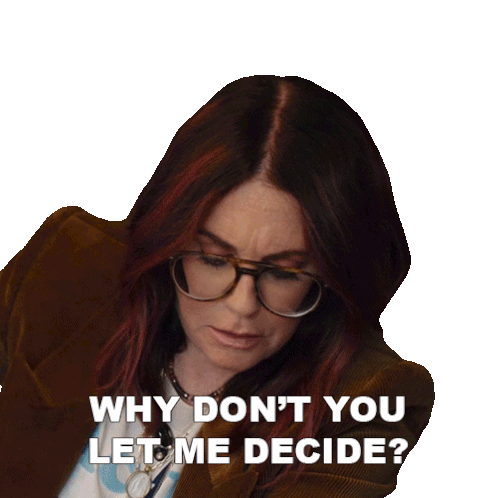 Megan Mullally from The Fabulous Four asks, 'Why don't you let me decide?' with a questioning expression.